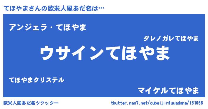 | 女子向けラノベタイトル風あだ名 | 『てほやまの卵を拾いまして』 |