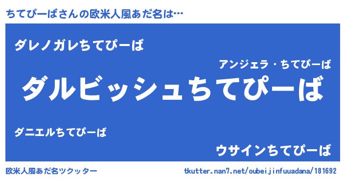| 男性向けラノベタイトル風あだ名 | 『ちてぴーばという概念が存在しない退屈な世界 』 |