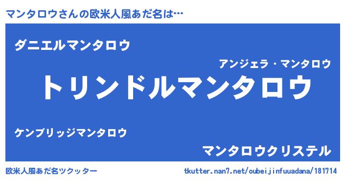 | 男性向けラノベタイトル風あだ名 | 『転生したらマンタロウだった件』 |