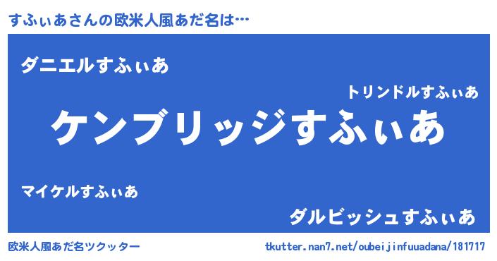 | 意味不明あだ名 | 『自称すふぃあ』『永久保存すふぃあ』 |