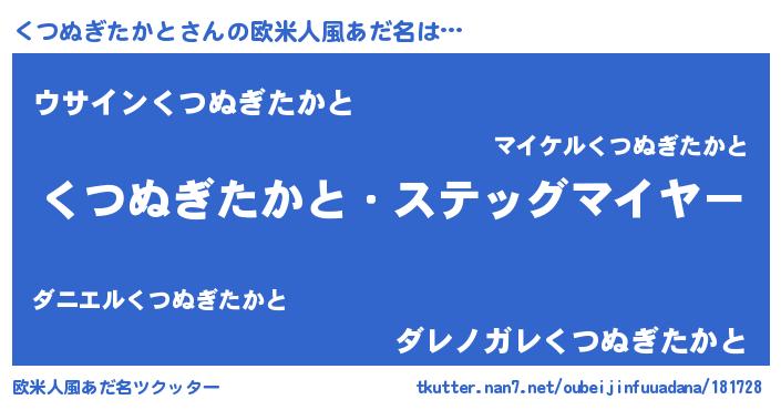 | 男性向けラノベタイトル風あだ名 | 『緋弾のクツヌギタカト』 |