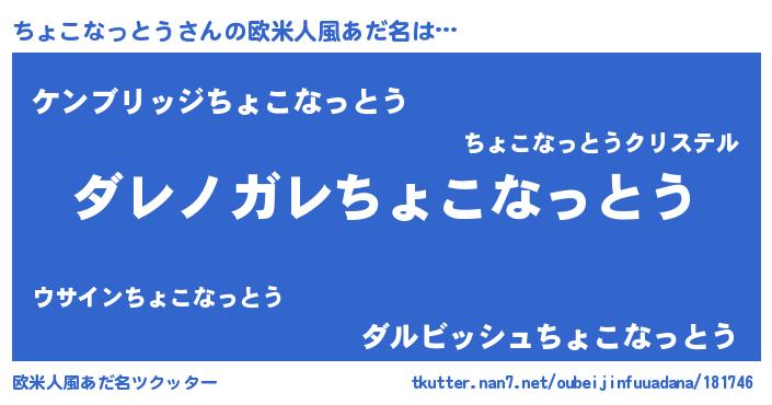 | 意味不明あだ名 | 『住所不定無職ちょこなっとう(85歳)』 |