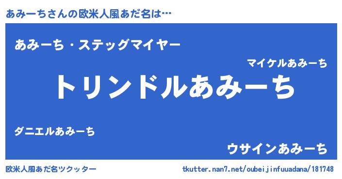 | 男性向けラノベタイトル風あだ名 | 『あみーち~年齢イコール彼女いない歴の魔法使い~』 |