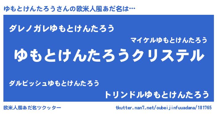 | 男性向けラノベタイトル風あだ名 | 『やはりゆもとけんたろうの青春ラブコメはまちがっている 』 |
