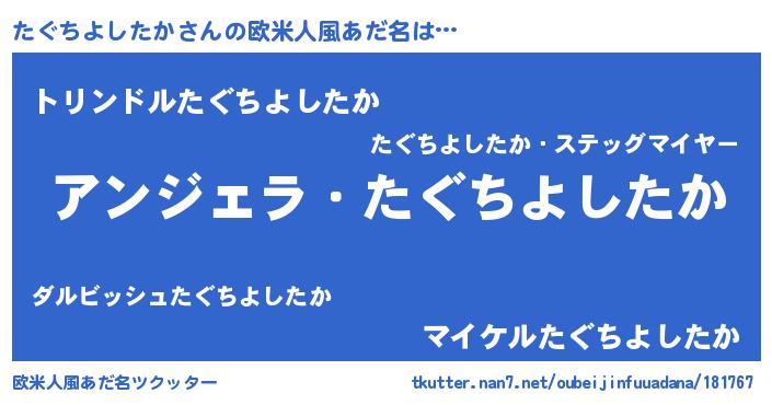 | 男性向けラノベタイトル風あだ名 | 『たぐちよしたかに滅ぼされるだけの簡単なお仕事です』 |