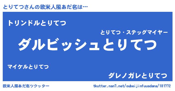 | 男性向けラノベタイトル風あだ名 | 『とりてつという概念が存在しない退屈な世界 』 |