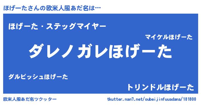 | 男性向けラノベタイトル風あだ名 | 『魔弾の王とほげーた』 |