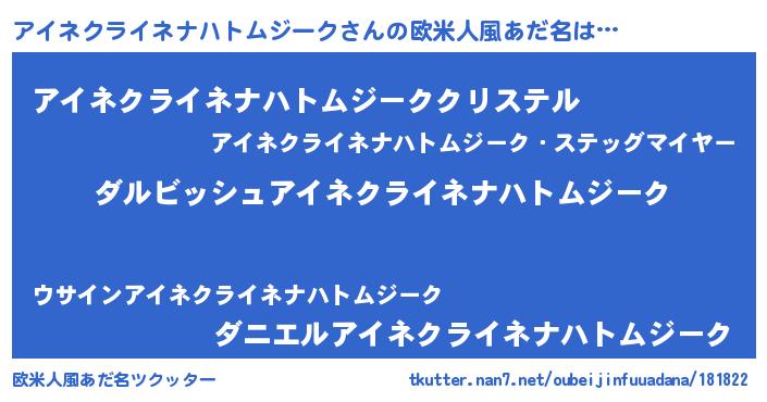 | 男性向けラノベタイトル風あだ名 | 『誰もが恐れるあのアイネクライネナハトムジークが、ぼくの専属メイドになるようです。』 |