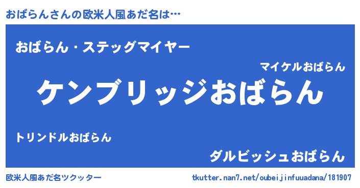 | 意味不明あだ名 | 『自称おばらん』『永久保存おばらん』 |