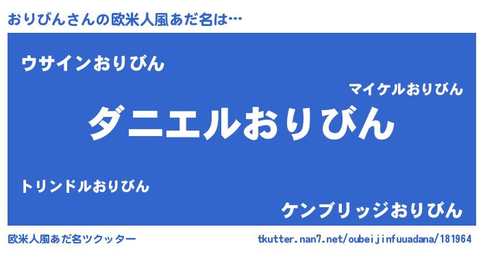 | ヒーロー風カッコイイあだ名 | 『慈愛の使者おりびん』『暗黒騎士オリ』 |