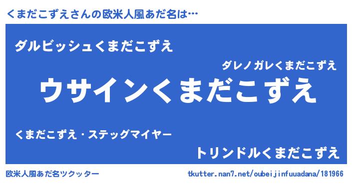 | ヒーロー風カッコイイあだ名 | 『魔戒騎士クマ』『ネオクマダコズエ』 |