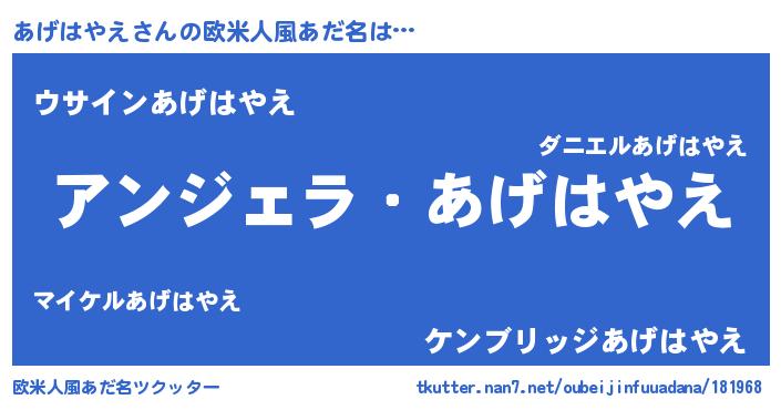 | 意味不明あだ名 | 『とにかく怪しいあげはやえ』 |