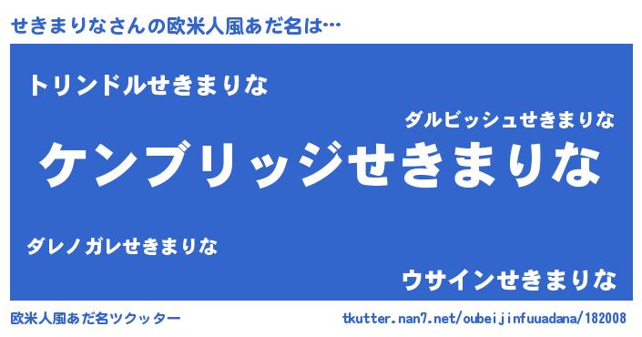 | 男性向けラノベタイトル風あだ名 | 『Re:せきまりなから始める異世界生活』 |
