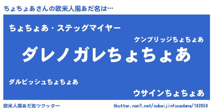 | 意味不明あだ名 | 『住所不定無職ちょちょあ(74歳)』 |