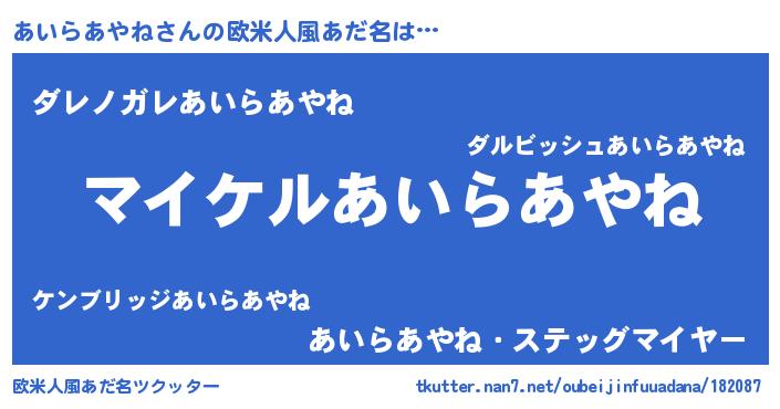 | 男性向けラノベタイトル風あだ名 | 『あいらあやねの憂鬱』 |
