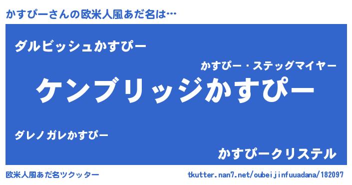 | 男性向けラノベタイトル風あだ名 | 『Re:かすぴーから始める異世界生活』 |