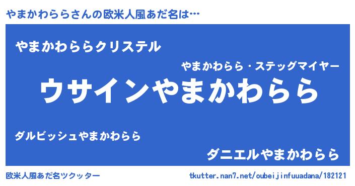 | 男性向けラノベタイトル風あだ名 | 『ダンジョンにやまかわららを求めるのは間違っているだろうか』 |