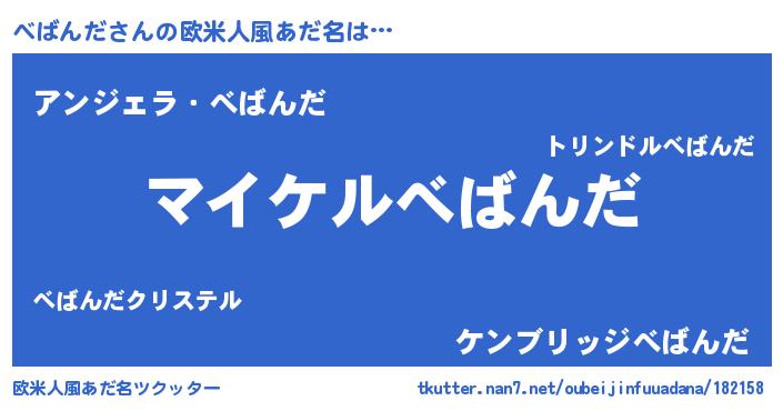 | 男性向けラノベタイトル風あだ名 | 『べばんだの憂鬱』『ベバンダスレイヤー』 |