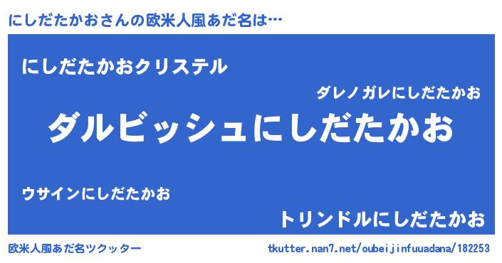 | 男性向けラノベタイトル風あだ名 | 『にしだたかおという概念が存在しない退屈な世界 』 |