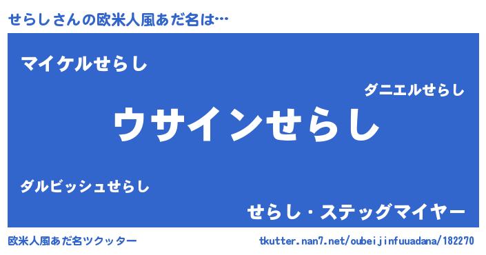 | ヘコむあだ名 | 『せら太郎』『せらにー』『牛乳』 |