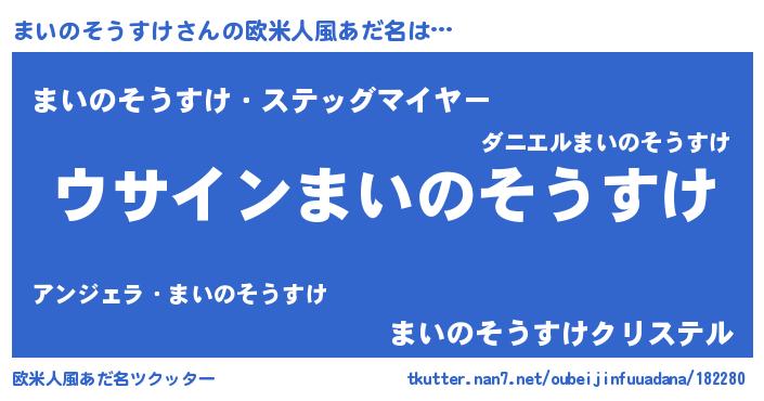| 男性向けラノベタイトル風あだ名 | 『まいのそうすけの嫁は女の子じゃないと思った?』 |