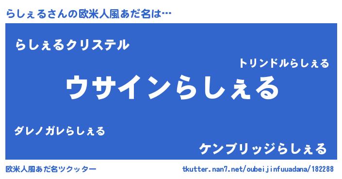| 胡散臭い通販商品みたいなあだ名 | 『信頼と実績のサプリメント…その名も「らしぇる」』 |
