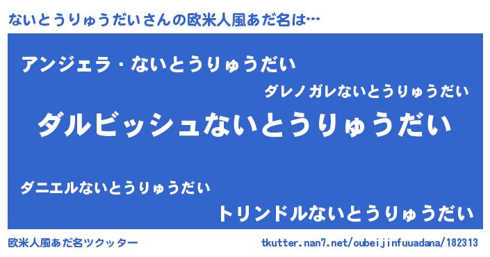| 男性向けラノベタイトル風あだ名 | 『ないとうりゅうだいという概念が存在しない退屈な世界 』 |