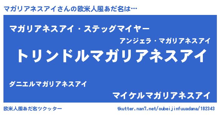 | 男性向けラノベタイトル風あだ名 | 『転生したらマガリアネスアイだった件』 |