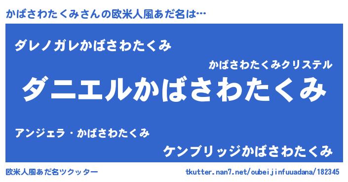 | 男性向けラノベタイトル風あだ名 | 『ノーゲーム・ノーカバサワタクミ』 |