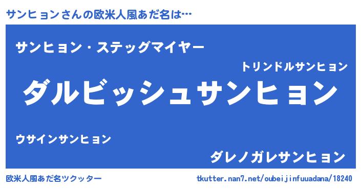 | 胡散臭い通販商品みたいなあだ名 | 『前代未聞の健康食品…その名も「サンヒョン」』 |