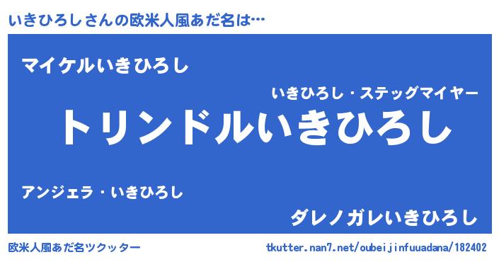 | 男性向けラノベタイトル風あだ名 | 『転生したらいきひろしだった件』 |