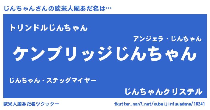 | 女子向けラノベタイトル風あだ名 | 『じんちゃんなんてお断りですっ。』 |