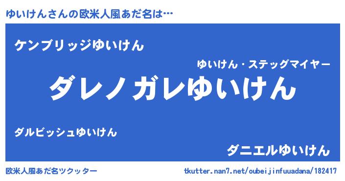 | 意味不明あだ名 | 『住所不定無職ゆいけん(1歳)』 |