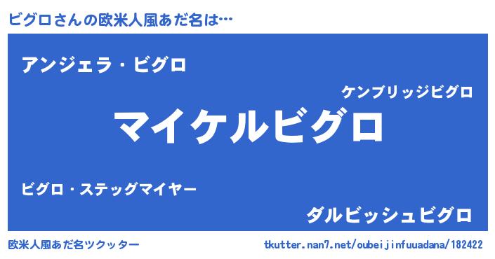 | 男性向けラノベタイトル風あだ名 | 『ビグロの憂鬱』『はたらくビグロさま!』 |