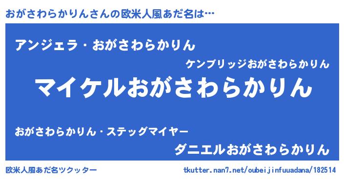 | 男性向けラノベタイトル風あだ名 | 『おがさわらかりんの憂鬱』 |