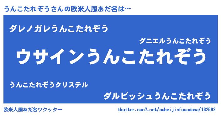 男性向けラノベタイトル風あだ名 | 『うんこたれぞうの嫁は女の子じゃないと思った?』 |