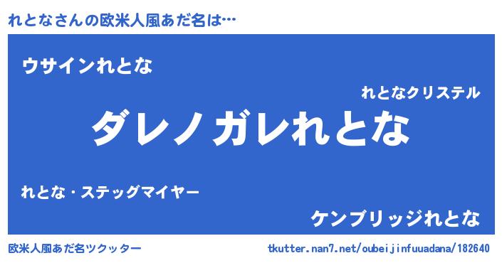 | 男性向けラノベタイトル風あだ名 | 『この素晴らしい世界にれとなを!』 |