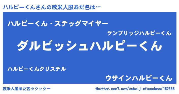 | 男性向けラノベタイトル風あだ名 | 『ハルピーくんという概念が存在しない退屈な世界 』 |