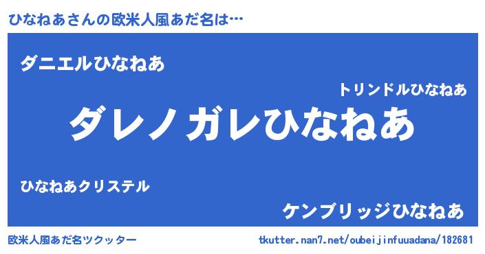 | 意味不明あだ名 | 『住所不定無職ひなねあ(3歳)』 |