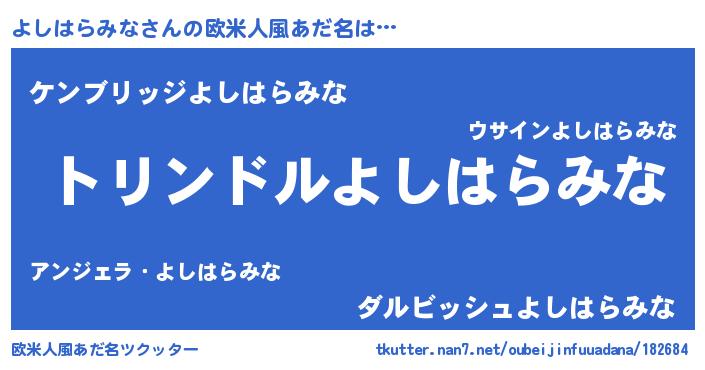 | 男性向けラノベタイトル風あだ名 | 『よしはらみな~年齢イコール彼女いない歴の魔法使い~』 |