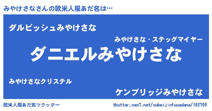 | 男性向けラノベタイトル風あだ名 | 『おまえをオタクにしてやるから、俺をみやけさなにしてくれ! 』 |