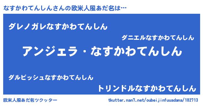 | ヘコむあだ名 | 『なすかわてんしん(震え声)』『なまこ酢』 |