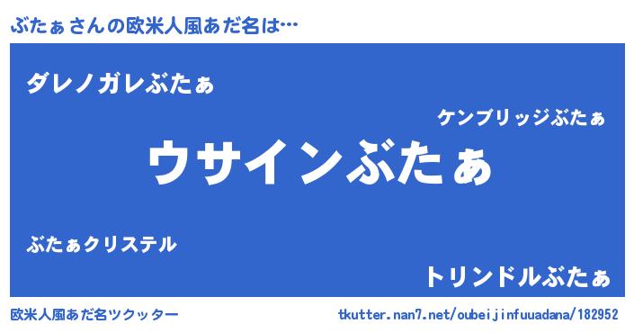 | 男性向けラノベタイトル風あだ名 | 『ぶたぁの嫁は女の子じゃないと思った?』 |