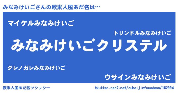 | 男性向けラノベタイトル風あだ名 | 『やはりみなみけいごの青春ラブコメはまちがっている 』 |