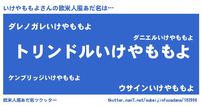 | 男性向けラノベタイトル風あだ名 | 『イケヤモモヨスレイヤー』 |