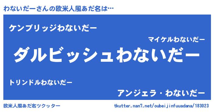 | 男性向けラノベタイトル風あだ名 | 『わないだーという概念が存在しない退屈な世界 』 |