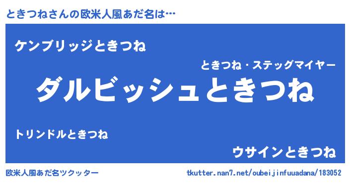 | 男性向けラノベタイトル風あだ名 | 『ときつねという概念が存在しない退屈な世界 』 |