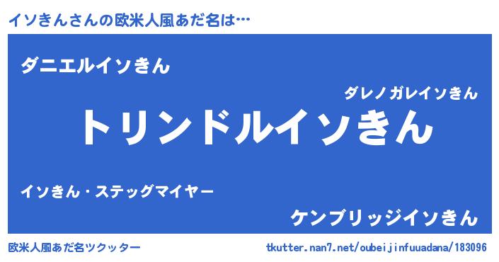 | 男性向けラノベタイトル風あだ名 | 『転生したらイソきんだった件』 |