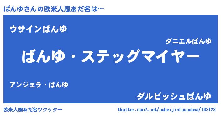 | 男性向けラノベタイトル風あだ名 | 『緋弾のバンユ』『はたらくばんゆさま!』 |