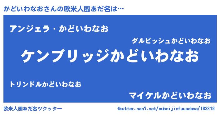 | 男性向けラノベタイトル風あだ名 | 『魔法科高校のかどいわなお』 |